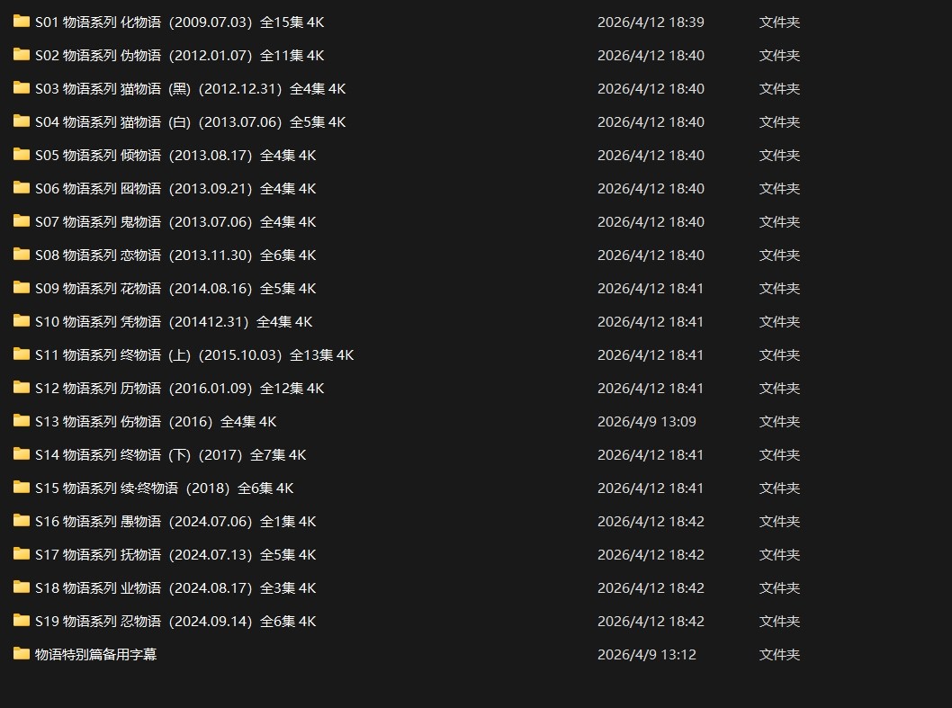 物语系列 (2009-2024) 共19季 118集 4K 中日双语特效字幕【共263GB 4K收藏版】