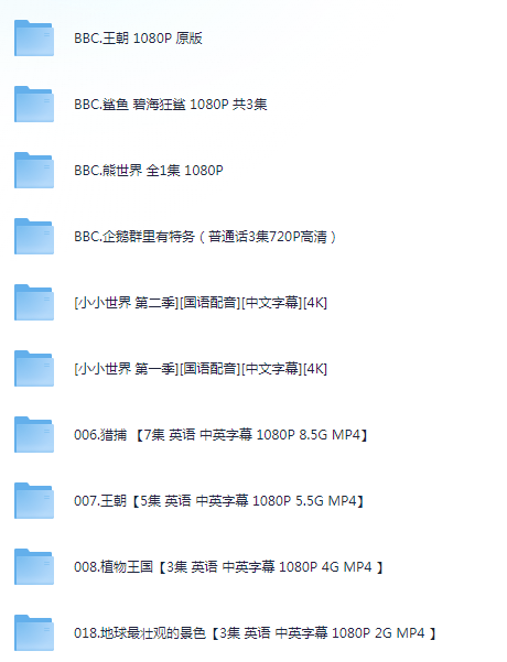 1、本贴标题:央视力荐儿童纪录片180部合集【包含BBC系列(部分国语配音)】【2.2T】格局炸裂