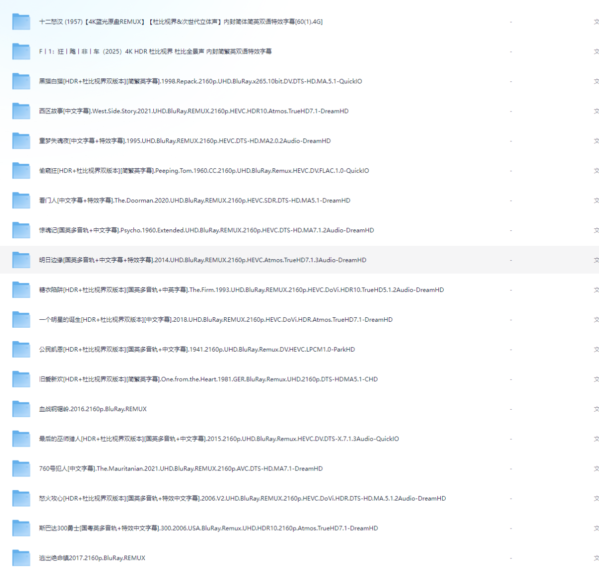 6、全4K+UHD蓝光原盘+REMUX典藏版电影合集【内封中文字幕】【共288部】单部58G/共16.2T免费观看全集高清网盘资源