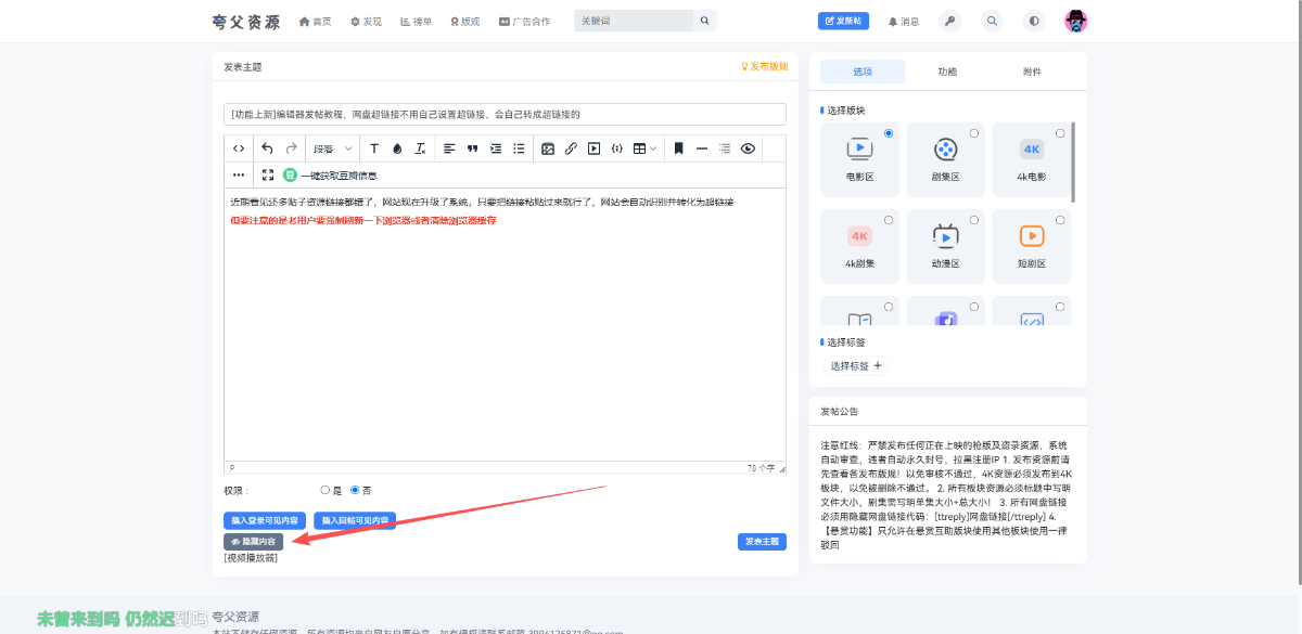 [功能上新]编辑器发帖教程,网盘超链接不用自己设置超链接,会自己转成超链接的