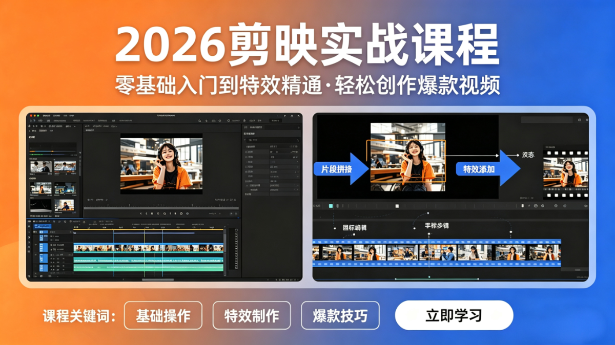 6、2026剪映实战课程,零基础入门到特效精通,轻松创作爆款视频【4.33G】免费观看全集高清网盘资源