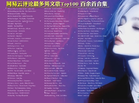 6、【热门英文金曲】《网易云评论最多的英文 TOP100 合集》[MP3]【805M】免费观看全集高清网盘资源